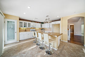 The bright and natural light illuminate the home, emanating a soothing sensation as the sunlight bounces off the laminate wood floors. Just off the dining room, sits a bedroom/office, featuring a built-in workstation and Murphy bed set-up, and a bathroom conveniently outside. With a cohesive layout throughout, the kitchen seamlessly opens up to the comforting family room that features a gas fireplace and an entertaining wet bar. The entertainer's kitchen features ample storage, a beautiful center island with granite countertop and sink, and a roomy pantry. Upstairs brings you to the master bedroom which features high ceilings, an intriguing balcony overlooking the stunning backyard and city view, and a marvelous master bath with a jetted tub, dual vanities, walk-in shower, and huge walk-in closet.